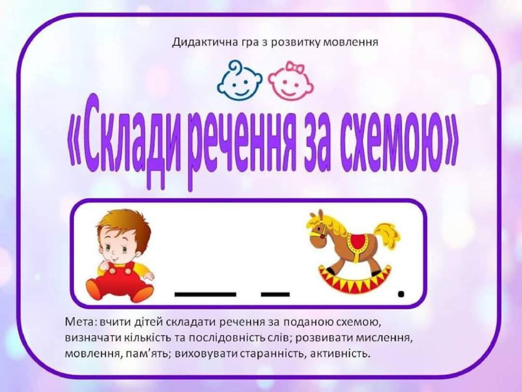 Дидактична гра з розвитку мовлення: “Склади речення за схемою”.