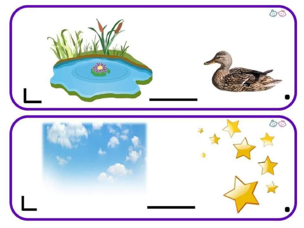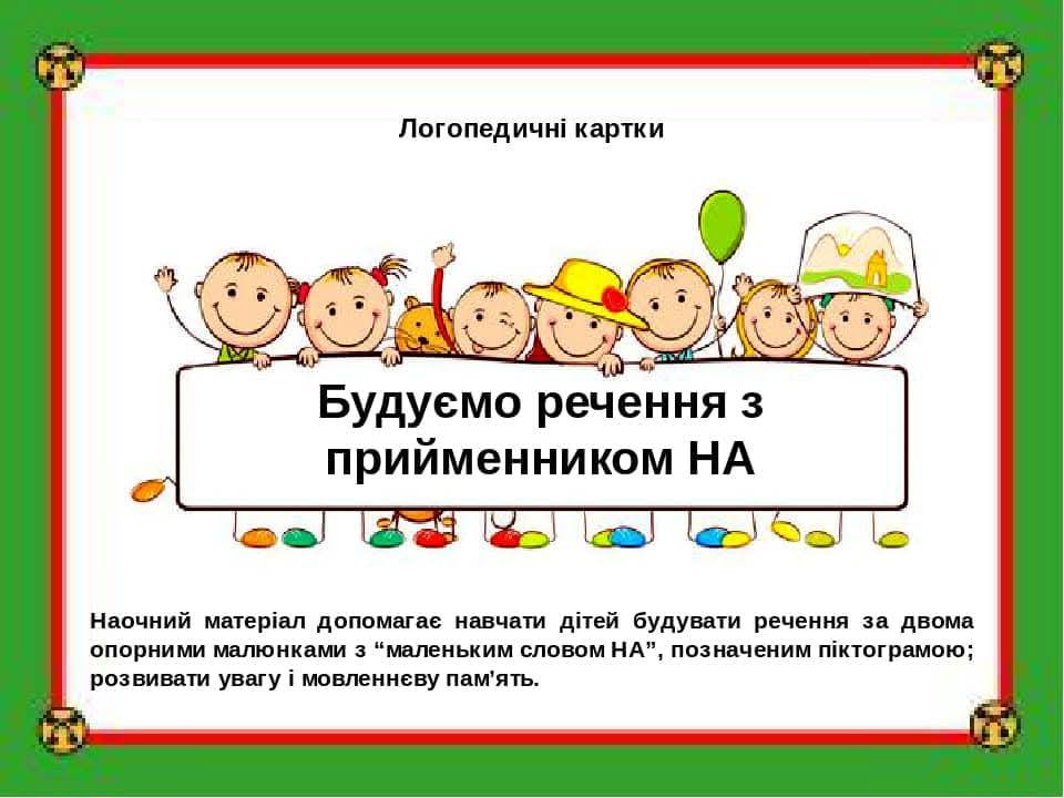 Наочний матеріал допомагає навчати дітей будувати речення за двома опорними малюнками з “маленьким словом НА”, позначеним піктограмою; розвивати увагу і мовленнєву пам’ять.
